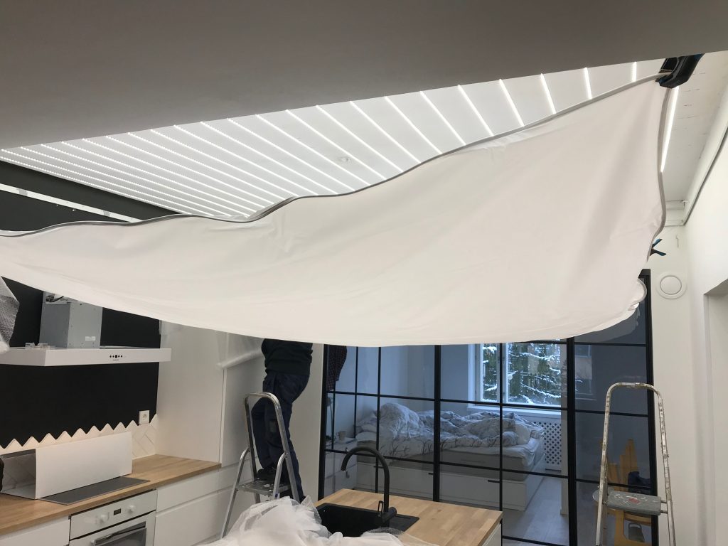- Finstudion stretch sisäkattomateriaalilla voidaan toteuttaa helposti näyttäviä valaistusratkaisuja